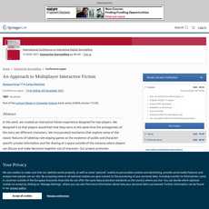 The article "An Approach to Multiplayer Interactive Fiction" presents a study on the design and evaluation of an interactive fiction experience for two players. The authors aimed to create an experience where players feel like they are both protagonists of the story but different characters, incorporating mechanics from tabletop role-playing games. The study found that players were interested in the prospect of multiplayer interactive fiction, but had difficulty keeping track of all the provided dimensions of information.