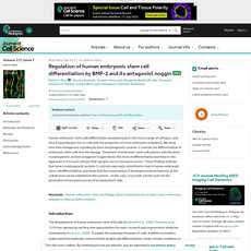 1. This article examines the regulation of human embryonic stem cell differentiation by bone morphogenetic protein-2 (BMP-2) and its antagonist noggin.