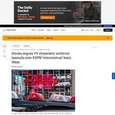 1. Disney has asked a US judge to dismiss two consumer antitrust cases alleging that its business contracts have driven up the costs of rival video streaming services YouTube TV and DirecTV Stream.