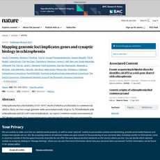 The article “Mapping genomic loci implicates genes and synaptic biology in schizophrenia | Nature” provides an overview of a large genome-wide association study (GWAS) of schizophrenia which involved 74,776 individuals with schizophrenia and 101,023 control individuals. The results showed that common variants are associated with schizophrenia and that the disorder is primarily a disorder of neuronal function.