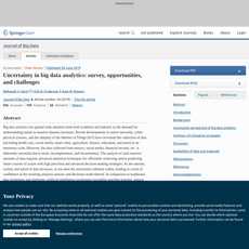 However, there are some points that could be further explored or expanded upon. For example, while the article mentions several artificial intelligence techniques used for big data analytics (e.g., machine learning, natural language processing), it does not provide any details on how these techniques can be used to mitigate uncertainty or how they compare to traditional methods of analysis. Additionally, while the article discusses potential risks associated with big data analytics (e.g., noise, incompleteness), it does not provide any concrete solutions or strategies for addressing these risks. Finally, while the article provides an overview of current research on big data analytics with regards to uncertainty, it does not explore any counterarguments or alternative perspectives on this topic which could have provided a more balanced view of the issue at hand.