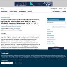 1. The article discusses the potential of gene therapy to induce dental pulp stem cell differentiation into odontoblasts by electroporation-mediated gene delivery of growth/differentiation factor 11 (Gdf11).