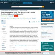 The article provides an analysis of melt erosion and deposition at contact interfaces in convex rail launchers, based on experiments conducted at a small-caliber rail launcher. The results indicate that convex rails reduce material losses of armatures and homogenize depositions, mitigating edge erosion. The article also suggests that the initial contact pressure on the contact interface of the convex rail is less concentrated on edges, allowing for more even molten aluminum deposition and preventing it from damaging the bore insulator.