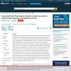 The article “Improved Path Planning by Tightly Combining Lattice-Based Path Planning and Optimal Control” provides an overview of a novel approach for solving path planning problems for autonomous vehicles such as self-driving cars, unmanned aerial vehicles and autonomous underwater vehicles. The article is written in a clear and concise manner, making it easy to understand the main points of the paper. Furthermore, the authors provide evidence from simulations that their proposed approach yields improved results compared to existing methods.