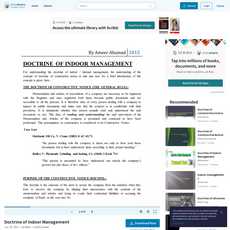 1. The Doctrine of Indoor Management is a legal concept that protects the interests of shareholders and creditors in a company.