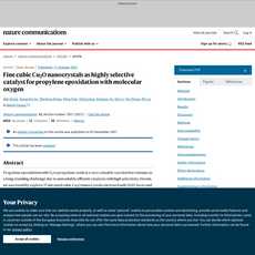 This article provides an overview of the potential of fine cubic Cu2O nanocrystals enclosed with {100} faces and {110} edges as a highly selective catalyst for propylene epoxidation with O2 to PO. The authors provide evidence from previous studies that suggest that Cu-based catalysts are promising in this regard, but that their reported PO selectivity is not satisfactory. They then present their own findings on the use of fine c-Cu2O NCs, which they claim can selectively catalyze propylene epoxidation with O2 to PO at temperatures below 110°C, with the Cu2O{110} edge sites as the active site.