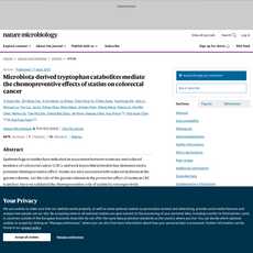 1. 微生物群衍生的色氨酸分解代谢物介导他汀类药物对结直肠癌的化学预防作用。