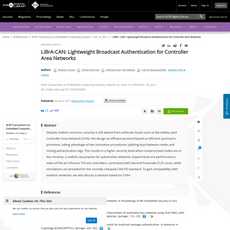 1. LiBrA-CAN is a lightweight broadcast authentication protocol for Controller Area Networks (CAN) that takes advantage of two innovative procedures: splitting keys between nodes and mixing authentication tags.