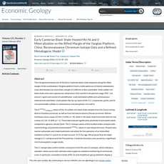 The article “Early Cambrian Black Shale-Hosted Mo-Ni and V Mineralization on the Rifted Margin of the Yangtze Platform, China: Reconnaissance Chromium Isotope Data and a Refined Metallogenic Model” is an informative piece that provides insight into the origin of extreme metal enrichment in some Early Cambrian sulfide-rich black shale units on the Yangtze platform. The authors present chromium isotope data which helps to further characterize and trace the metal source of these peculiar polymetallic black shales. They also present a refined metallogenic model for this type of mineralization which not only occurs along the Early Cambrian continental margin of the Yangtze platform but also has an equivalent in Late Devonian continental margin of western North America.