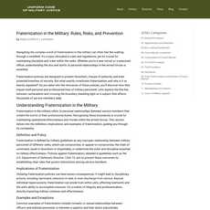 The article "Fraternization in the Military: Rules, Risks, and Prevention" provides a comprehensive overview of fraternization policies within the military, outlining the definition, implications, examples, and prevention strategies. While the article offers valuable insights into the importance of adhering to these policies for maintaining discipline and order within the ranks, there are several areas where critical analysis is warranted.