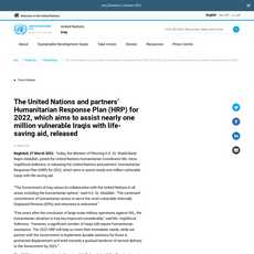 1. The United Nations and partners have released the Humanitarian Response Plan (HRP) for 2022, which aims to assist nearly one million vulnerable Iraqis with life-saving aid.