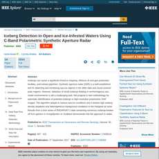 这篇文章是关于使用C波段极化合成孔径雷达(PolSAR)在开水和夹杂海冰水中进行冰山侦测的文章。作者重点介绍了一个新方法——双极化比例异常侦测(DPolRAD)——用于自动识别高分辨率PolSAR图像中的小冰山。