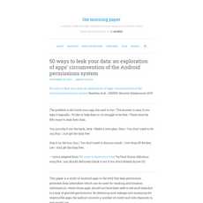 1. This paper explores how Android apps are able to circumvent the Android permissions system and leak user data without permission.