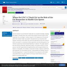 1. This article explores the role of the fat researcher in fat studies research, and how their experiences as a fat person can inform their research.