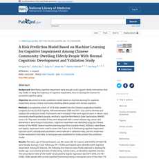 1. This study aimed to develop and validate a risk prediction model based on machine learning for cognitive impairment among Chinese community-dwelling elderly people with normal cognition.