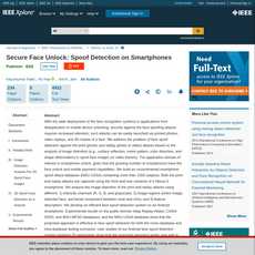 The article titled "Secure Face Unlock: Spoof Detection on Smartphones" published in IEEE Journals & Magazine discusses the increasing use of biometric authentication, specifically face and fingerprint recognition, for confirming user identity on smartphones. The article highlights the need for capabilities to detect spoof biometric attacks to alleviate fraud and user concerns.