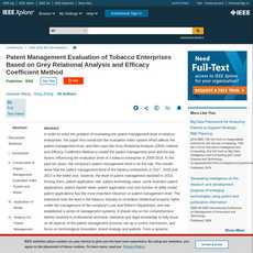 1. This article discusses the use of Grey Relational Analysis (GRA) and Efficacy Coefficient Method to evaluate the patent management level of tobacco enterprises.
