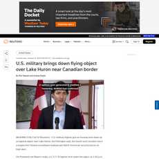 1. The U.S. military shot down an octagonal object over Lake Huron near the Canadian border on Sunday.