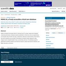 The article provides an overview of the MIMIC-III critical care database, which is a freely accessible resource for researchers internationally under a data use agreement. The article states that the dataset spans more than a decade and contains detailed information about individual patient care, allowing clinical studies to be reproduced and improved in ways that would not otherwise be possible.