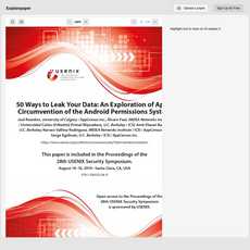 The article “Explainpaper” is an exploration of how apps can circumvent the Android permissions system to gain access to protected data without user consent. The authors have developed a pipeline for automatically discovering vulnerabilities in the Android permissions system through dynamic and static analysis, which they tested on more than 88,000 apps from the U.S. Google Play Store. They found a number of side and covert channels in active use, responsibly disclosed their findings to Google and received a bug bounty for their efforts.