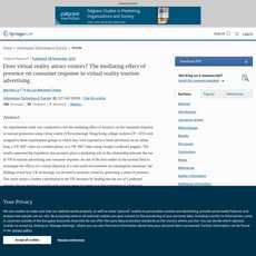 The article “Does virtual reality attract visitors? The mediating effect of presence on consumer response in virtual reality tourism advertising” provides an overview of how virtual reality (VR) technology is being used in the tourism industry to promote destinations and products. The article discusses the concept of presence and its potential role as a mediator between VR technology and consumer response to tourism advertising.
