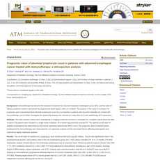 The article “Prognostic value of absolute lymphocyte count in patients with advanced esophageal cancer treated with immunotherapy: a retrospective analysis” by Zhao et al., published in Annals of Translational Medicine, is a well-written and comprehensive review of the current literature on the prognostic value of absolute lymphocyte count (ALC) in patients with advanced esophageal cancer (EC). The authors provide a thorough overview of the relevant research, including studies on CD4+ T cells and CD8+ T lymphocytes, PD-L1 expression assays, neutrophil-to-lymphocyte ratio (NLR), platelet-to-lymphocyte ratio (PLR), peripheral blood specimens, radiation exposure to bone marrow (BM), lymphoid tissue or blood circulation, minimal ALC value during radiotherapy (RT), planning target volume (PTV), cardiopulmonary doses, and more.