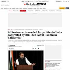 The article reports on a speech given by Rahul Gandhi, in which he claims that the BJP and RSS are controlling all instruments of politics in India. While the article provides some context for Gandhi's remarks, it does not offer any counterarguments or alternative perspectives. This one-sided reporting could be seen as biased against the BJP and RSS.