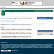 1. This chapter presents recent developments in the econometrics literature showing that machine learning methods can be used to estimate treatment effects from observational data.