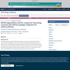 L'articolo "DICOM segmentation and STL creation for 3D printing: a process and software package comparison for osseous anatomy" pubblicato su 3D Printing in Medicine, si concentra sulla comparazione delle prestazioni di nove pacchetti software commerciali e open-source per la segmentazione DICOM e la creazione di modelli STL per la stampa 3D. Il processo di segmentazione è fondamentale per la creazione di modelli 3D personalizzati utilizzati in molte situazioni nel campo della chirurgia orale e maxillo-facciale, come l'istruzione, la pianificazione chirurgica e la simulazione chirurgica.