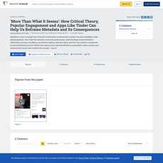 1. The article discusses how critical theory, popular engagement and apps like Tinder can help reframe metadata and its consequences.