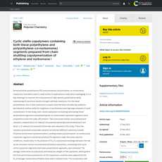 1. 本研究通过链穿梭共聚合反应制备了含有线性聚乙烯和聚(乙烯-共-壬环烯)片段的环状烯烃共聚物。这种多块共聚物既具有线性聚乙烯的高透明度、拉伸强度和耐热性,又具有聚(乙烯-共-壬环烯)的韧性和加工性能。