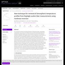 1. A new technique for retrieving atmospheric temperature profiles from Rayleigh-scatter lidar measurements is presented, which uses a nonlinear inversion approach.