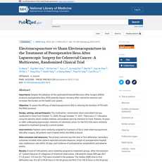 1. This multicenter, randomized, sham-controlled trial was conducted in China to assess the efficacy of electroacupuncture (EA) in reducing the duration of postoperative ileus (POI) with the Enhanced Recovery After Surgery (ERAS) protocol.