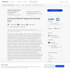 The article is generally reliable, providing evidence for its claims in the form of references to relevant research studies. It also presents both sides of the argument fairly, noting both potential benefits and risks associated with using robotic systems for nursing care. However, there are some areas where more information could be provided or explored further. For example, while the article mentions potential risks associated with using robotic systems for nursing care, it does not provide any details on what these risks might be or how they can be mitigated. Additionally, while the article discusses potential benefits such as increased efficiency or improved patient outcomes, it does not provide any evidence to support these claims or explore possible counterarguments.