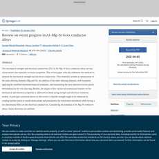 The article provides an overview of recent progress in Al–Mg–Si 6xxx conductor alloys, discussing their properties, applications, and potential improvements. The article is generally reliable and trustworthy, providing evidence for its claims with references to relevant research works. However, there are some points that could be improved upon. For example, the article does not explore counterarguments or present both sides of the argument equally; it only presents one side of the argument without considering any potential risks or drawbacks associated with using Al–Mg–Si 6xxx conductor alloys. Additionally, the article does not provide any evidence for its claims regarding the corrosion resistance of these alloys or discuss any potential safety concerns associated with them. Furthermore, there is no discussion of possible alternatives to Al–Mg–Si 6xxx conductor alloys that may be more suitable for certain applications or environments. In conclusion, while this article provides an informative overview of recent progress in Al–Mg–Si 6xxx conductor alloys, it could benefit from further exploration into counterarguments and alternative solutions as well as more detailed discussion on potential risks associated with using these materials.