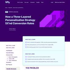 1. O artigo descreve uma estratégia de personalização em três camadas para aumentar as taxas de conversão da Mutiny. A primeira camada se concentra na segmentação de tráfego com base em dados firmográficos, enquanto a segunda camada é baseada no CRM da empresa e a terceira camada é comportamental.