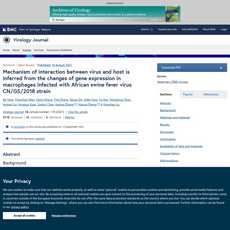 The article “Mechanism of interaction between virus and host is inferred from the changes of gene expression in macrophages infected with African swine fever virus CN/GS/2018 strain” provides a detailed overview of the effects of African swine fever virus (ASFV)-CN/GS/2018 on porcine alveolar macrophages (PAMs). The authors use RNA sequencing (RNA-seq) to identify 1154 differentially expressed genes that are enriched in various biological processes such as innate immune response, inflammatory response, chemokines, and apoptosis. They also confirm their findings using fluorescent quantitative polymerase chain reaction (qPCR).