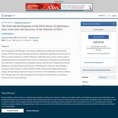 1. The article discusses the 60th anniversary of the discovery of the molecular structure of DNA by James D. Watson and Francis H.C. Crick, and how this discovery has become a symbol of modern biology.