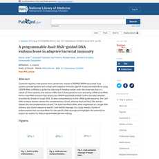 2. A programmable dual-RNA-guided DNA endonuclease has been identified in a subset of these systems, which uses two RNAs to guide the CRISPR-associated protein Cas9 to introduce double-stranded breaks into target DNA at specific sites.