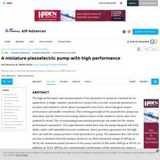 The article “A miniature piezoelectric pump with high performance” provides a detailed description of a single-chamber piezoelectric pump with a circular unimorph piezoelectric actuator and cantilever check valves that has good output performance and smaller overall size. The article presents evidence for its claims through theoretical analysis as well as experimental results from prototype testing. The article also provides potential applications for this technology in microelectronic cooling, biomedical, and other fields.