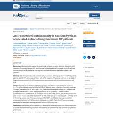 The article “Anti-parietal cell autoimmunity is associated with an accelerated decline of lung function in IPF patients” is a comparative study that examines the prevalence of anti-parietal cell autoimmunity (APCA) and its association with lung function decline in IPF patients. The study was conducted retrospectively and included 138 IPF patients diagnosed between 2007 and 2014 who were tested for APCA. The results showed that 19 (13.7%) of the participants were positive for APCA, and these individuals had a less severe disease than those who were negative for APCA, with better DLCO, preserved PaO2, and a lower rate of honeycombing on HRCT. However, they experienced an accelerated decline of FVC compared to those who were negative for APCA.