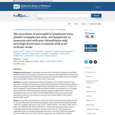 1. This study investigated the association of neutrophil to lymphocyte ratio (NLR), platelet to lymphocyte ratio (PLR), and lymphocyte to monocyte ratio (LMR) with post-thrombolysis early neurological outcomes in patients with acute ischemic stroke.
