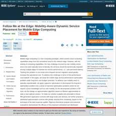The article “Follow Me at the Edge: Mobility-Aware Dynamic Service Placement for Mobile Edge Computing” is an informative and well written piece of research on mobile edge computing (MEC). The authors provide an overview of MEC, discuss related work in this field, and propose their own mobility-aware dynamic service placement framework for cost efficient MEC.