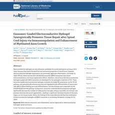 1. This article discusses the potential of using a combination of conductive hydrogels and bone marrow stem cell-derived exosomes to promote tissue repair after spinal cord injury.