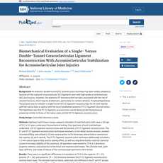 The article is generally reliable, as it is based on a controlled laboratory study that tested 18 fresh-frozen human cadaveric shoulders in order to compare a single-tunnel (ST) coracoclavicular (CC) ligament reconstruction for acromioclavicular joint injuries with the native state as well as with the more established anatomic double-tunnel (DT) CC ligament reconstruction. The ultimate load, yield load, stiffness, and mode of failure of the reconstructed specimens were tested, and there were no significant differences in translation at 70 N in the superior, anterior, and posterior directions between the ST CC ligament reconstruction and the intact state. Additionally, there were no distal clavicle fractures in load-to-failure testing in either group.