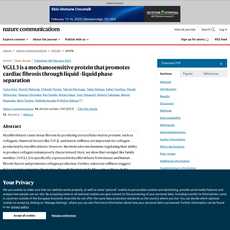 This article provides an overview of the role of VGLL3 in cardiac fibrosis through liquid-liquid phase separation (LLPS). The authors provide evidence from previous studies on the role of matrix stiffness in regulating the differentiation of cardiac and hepatic cells into their respective fibroblast types, as well as the involvement of NONO condensates in various physiological functions and pathological conditions. The article also presents evidence from their own experiments on how substrate stiffness dictates the differentiation of cardiac cells into their respective fibroblast types.