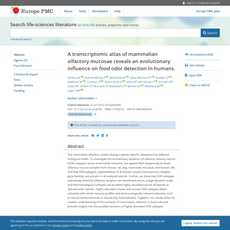 This article is a reliable source of information on the evolutionary dynamics of olfactory sensory neuron (OSN) subtypes across mammalian evolution. The authors have used RNA sequencing of whole olfactory mucosa samples from six different species - mouse, rat, dog, marmoset, macaque and human - to investigate the evolutionary dynamics of OSN subtypes. The results show that OSN subtypes representative of all known mouse chemosensory receptor gene families are present in all analyzed species and that homologous subtypes can be either highly abundant across all species or species/order specific. Additionally, the authors found that highly abundant mouse and human OSN subtypes detect odorants with similar sensory profiles and sense ecologically relevant odorants such as mouse semiochemicals or human key food odorants.