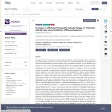 The article is generally reliable and trustworthy in its discussion of the development of solution-processable, optically transparent polyimides with ultra-low linear coefficients of thermal expansion. The article provides a comprehensive overview of the current state of research on this topic, including an examination of the factors influencing the transparency of PI films (chemical structure, physical factors, processing conditions), as well as strategies for achieving excellent combined properties (optical transparency, high Tg, low CTE).