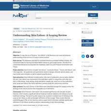 The article “Understanding Skin Failure: A Scoping Review” is a comprehensive review that provides an overview of current research on skin failure. The authors conducted a thorough search for published and unpublished literature, including databases such as PubMed, Embase, CINAHL, Google Scholar, Open Gray, and ProQuest Dissertation and Theses. Data collected included author, title, year of publication, journal name, study design, study setting, study population, sample size, main focus of the publication, what causes skin failure, skin failure definition, primary study aim and primary outcome.