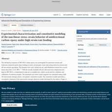 1. This article presents an experimental characterization and constitutive modeling of the non-linear stress–strain behavior of unidirectional carbon–epoxy under high strain rate loading.